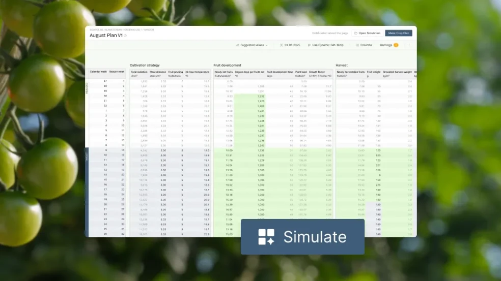Adapt cultivation plans with real-time insights, enabling swift adjustments and risk-free experimentation through advanced simulations, now with the added clarity of your projected Plant Balance.